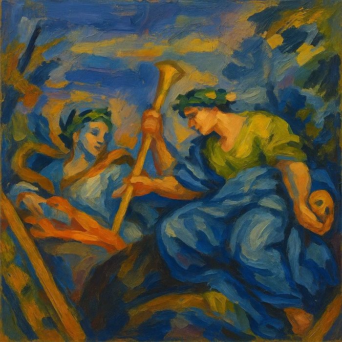 “Talia e Clio (particolare sala di Apollo, Palazzo Pitti)” IlSistemone (Wikimedia Commons, CC BY-SA 4.0), Modificación propia